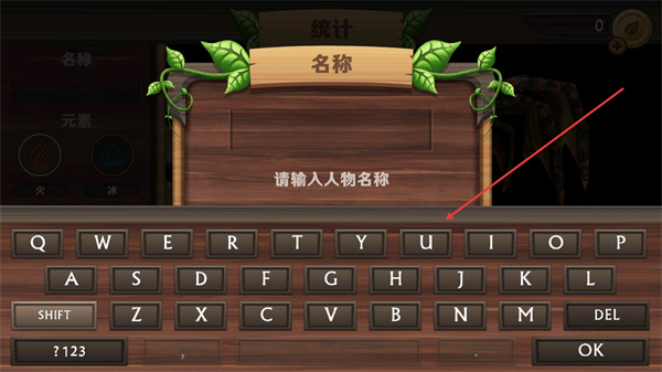2、处于请输入人物名称的界面,通过键盘输入角色名称,输入完毕后点击OK按钮确认该名称设置。