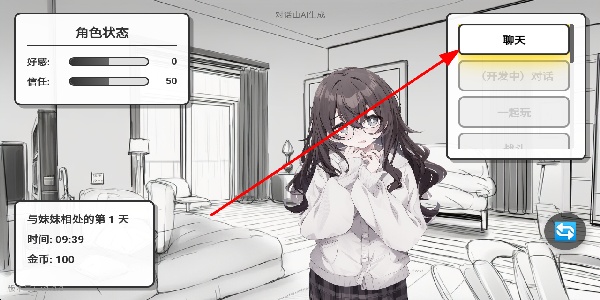 1、玩家可以选择聊天功能,与妹妹开启聊天互动,通过聊天提升好感和信任度,推进与妹妹的相处进程。