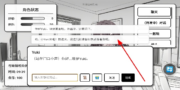 2、进行对话选择,在聊天中选择合适的对话选项,与妹妹交流,影响角色状态的变化,提升游戏的互动体验。
