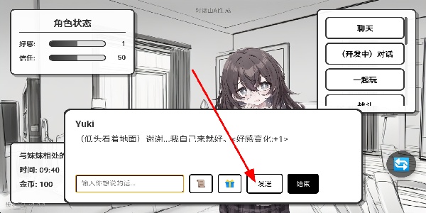 3、发送想说的话,在输入框中输入内容并发送,与妹妹深入交流,增强情感连接,提升好感度,助力相处的发展。