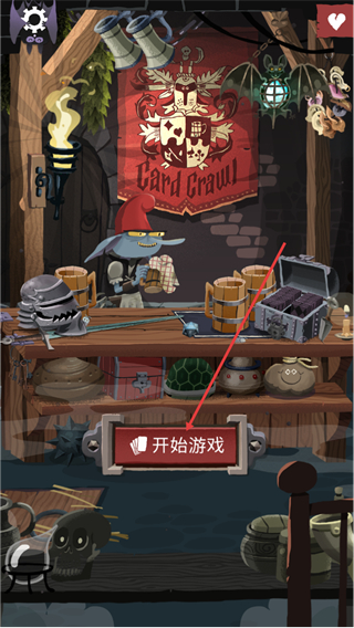 1、这是卡牌爬行者2的启动界面,找到界面中的开始游戏按钮并点击,即可进入游戏的后续流程。