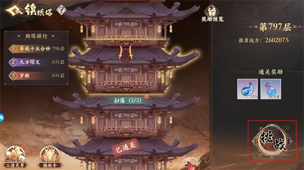 2、继续在这里确认自己想要进入的爬塔关卡,直接点击右下角的【挑战】按键即可进入到游戏挑战中;