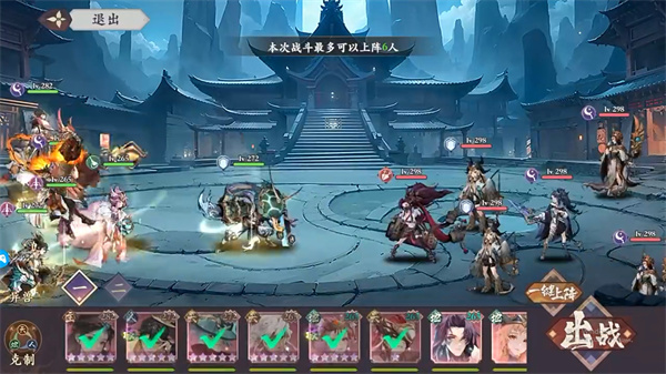 3、随后进入到卡牌策略对战的游戏中,在下方众多所拥有的卡牌中选择出一个自己想要出战的卡牌,之后点击右边的【出站】按键就可以操控自己的卡牌进行对决;
