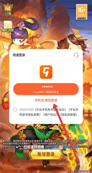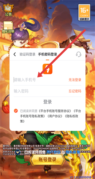 4、输入手机号和密码,勾选已阅读并同意相关协议后,点击登录按钮,完成密码登录操作。