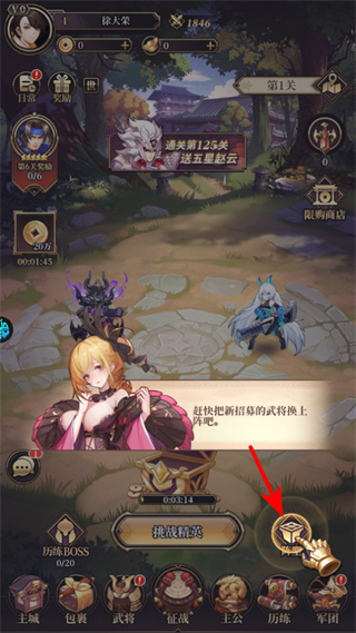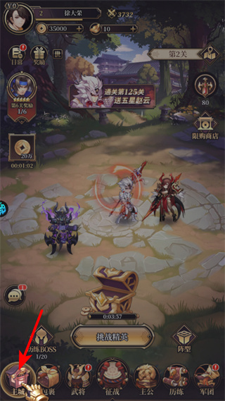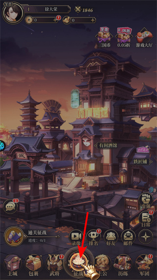 1、进入游戏后,点击征战按钮,可进入征战界面,这是参与关卡挑战的关键入口,推进进程并获取资源。
