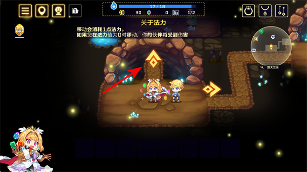 2、移动会消耗法力,需留意法力值,若法力为0时移动,伙伴会受到伤害,要合理规划移动路径,保证法力充足。