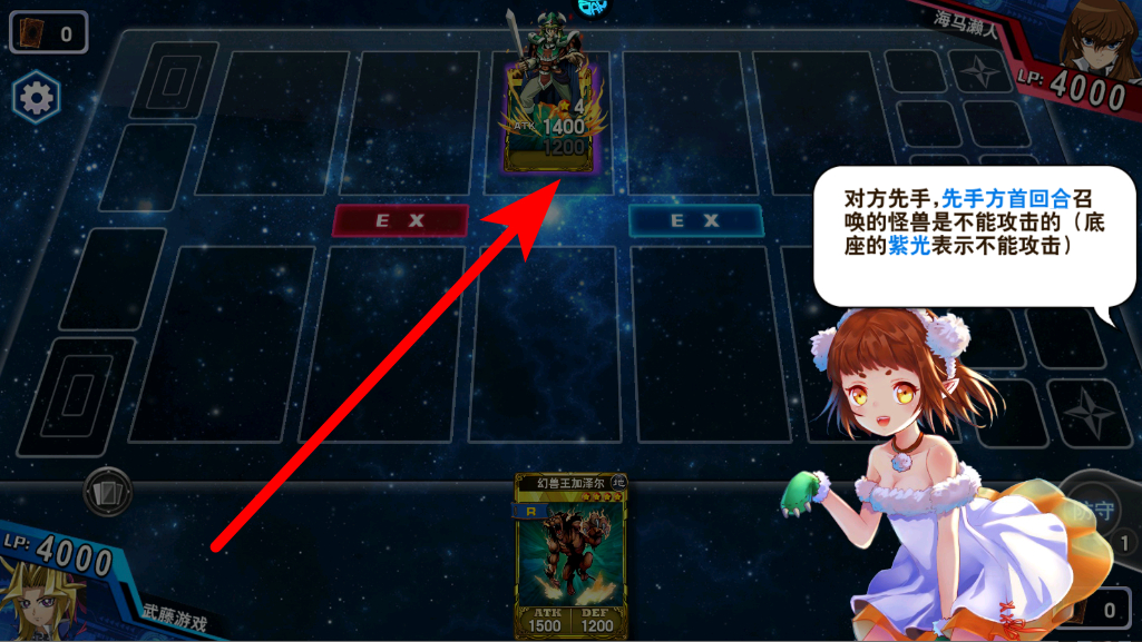 1、对战开始时,留意对手先手召唤的怪兽,若怪兽底座有紫光,代表其首回合不能攻击,可据此判断对手首轮攻击威胁,制定应对策略。