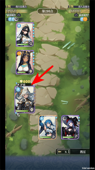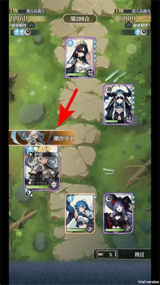 4、在战斗回合中,点击箭头指向的技能触发区域,这是释放角色技能的必要操作,按指引操作即可完成技能释放。