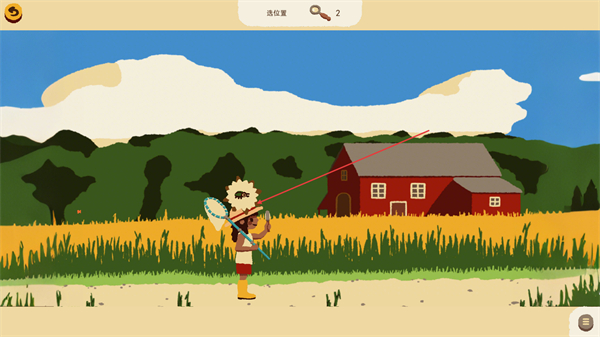 1、在农场场景中,操控角色持网靠近目标昆虫,准备捕捉操作。