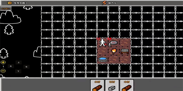 2、随机出现的各种生存物资卡牌之间进行选择抉择,不同格子之间安防上木材、火源、锅炉、水源等等卡牌物资,将每一个格子都开发出来;