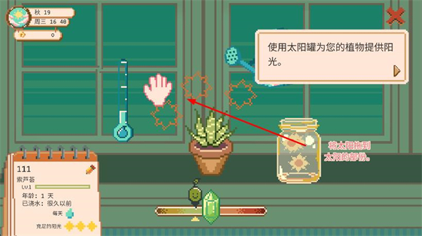 4、使用太阳罐道具可以提供光照,拖动到植物上方,可以加速植物生长成熟。