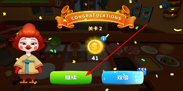 4、玩家完成关卡后获得奖励,获取金币或道具,提升餐厅的经营能力,顺利通过更多烹饪关卡。
