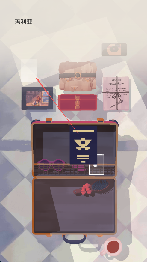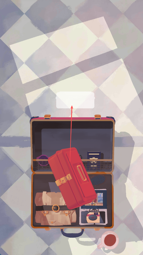 3、按照提示,依次整理箱内如红色箱子、照片等物品,完成物品的有序摆放。