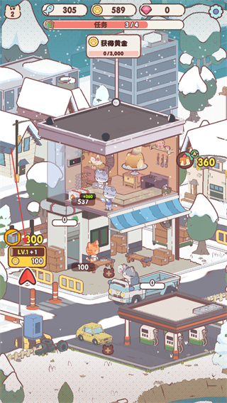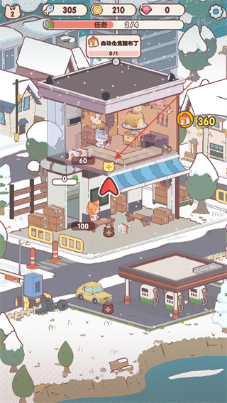支持放置玩法,即使退出游戏小猫仍会自动生产。上线即可收获累积甜品与金币,配合加速道具可快速完成订单,兼顾休闲玩家与策略爱好者的需求。
