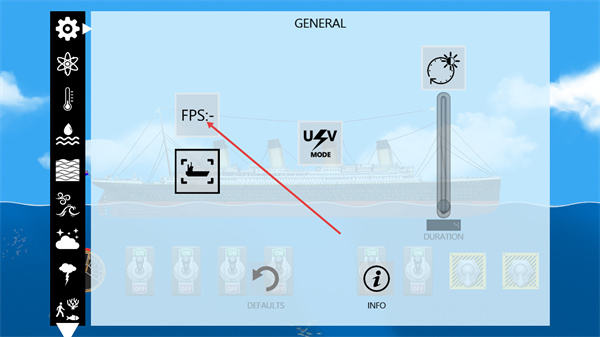 2、在GENERAL设置界面中,查看FPS数据,可切换USVMODE模式,调整相关参数后返回主界面继续操作。