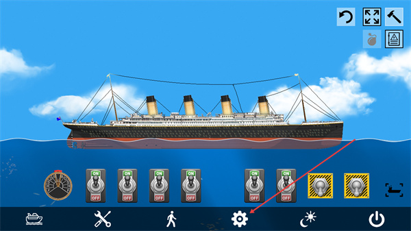 1、点击界面底部的设置按钮进入设置界面,可调整当前船只相关的开关状态,借助这些功能配置船只参数以推进游戏。