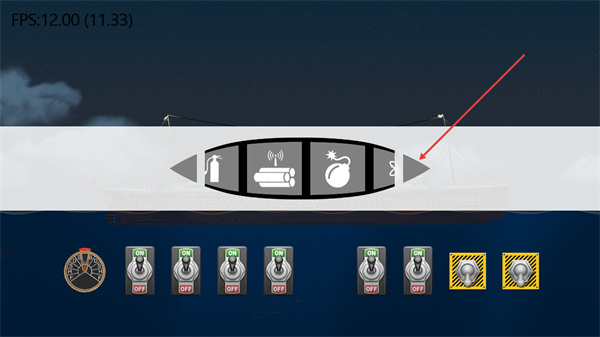 4、查看船只内部的道具选项如灭火器、炸弹,点击左右两边的箭头可以查看更多工具,借助这些道具功能推进游戏进程。