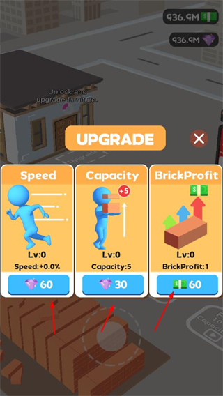 2、升级工人属性,提升建筑效率,助力房屋建造。