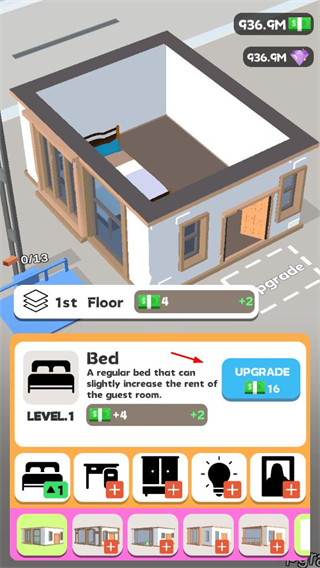 1、在房屋内布置家具并升级,提升房间租金收益,开启房产经营之旅。