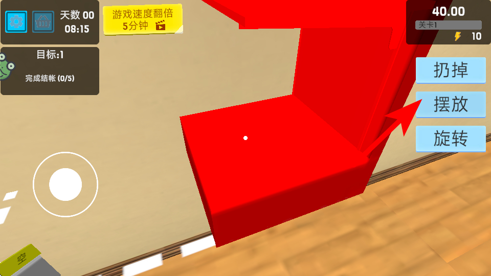2、点击摆放按钮布置店内家具,这是优化店铺环境的基础操作,合理摆放家具可完善店铺的布局,提升消费体验,助力经营收益提升。