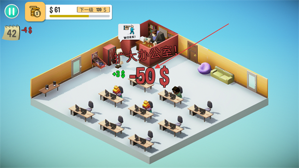 4、当资金充足时,触发扩大办公室的选项,花费对应金额完成办公室空间的拓展操作。