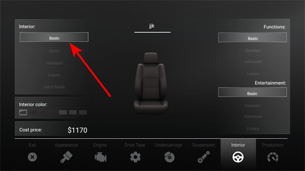 4、选择Basic内饰配置,配置选择是控制成本的重要操作,选择后可在满足基础需求的同时,平衡生产成本与市场竞争力。