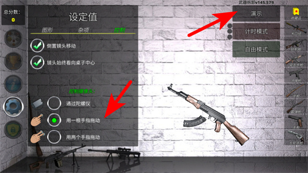 1、在设置界面选择用一根手指拖动的操作方式,这是调整交互习惯的关键操作,选定后可更便捷地操控镜头移动,提升组装时的操作流畅度。