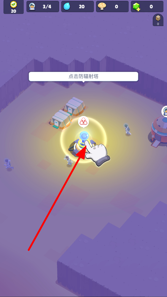 1、火星场景中,会有防辐射塔相关操作提示,点击防辐射塔,可启动或进行相关设置,为周围区域提供防辐射保护,保障基地安全。