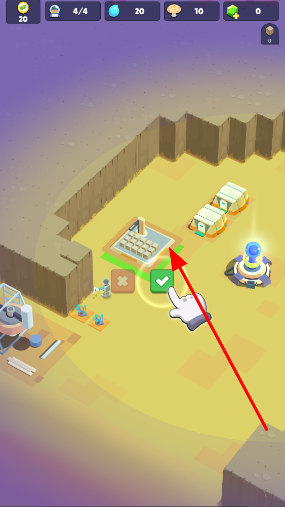 3、建造建筑时,会出现建筑的安置位置选择,在合适的区域点击确认按钮,即可完成建筑的安置,让建筑在火星基地中发挥作用。
