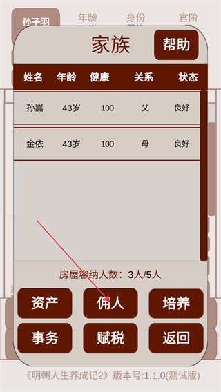 3、在家族列表内,可以选择佣人选项,增加家族人口数量。