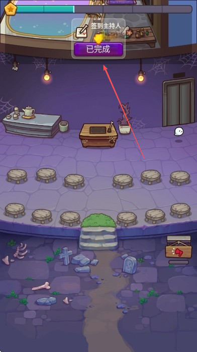 3、接着完成签到主持人任务,屏幕上方提示变为已完成。