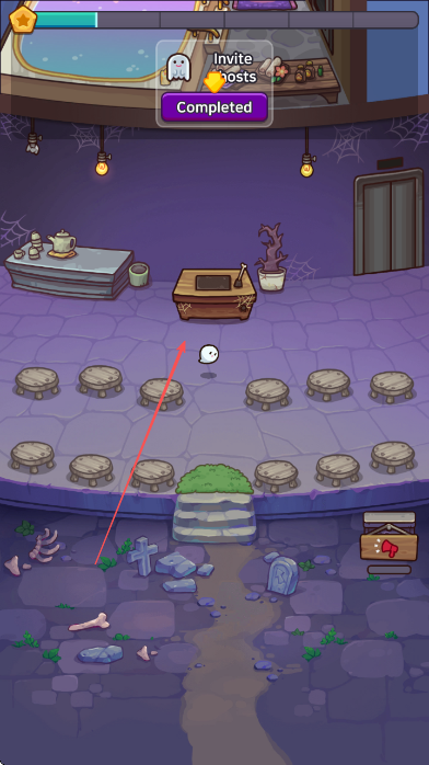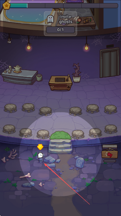 1、看到屏幕上方inviteghosts0/1提示,点击下方幽灵,完成邀请幽灵任务。