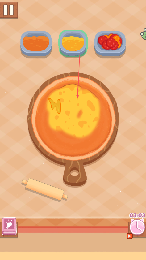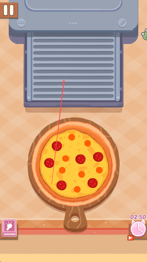 4、添加完所有食材后,将制作好的披萨放入烤箱进行烤制,在规定时间如3分23秒内完成制作,以获得更高评分。