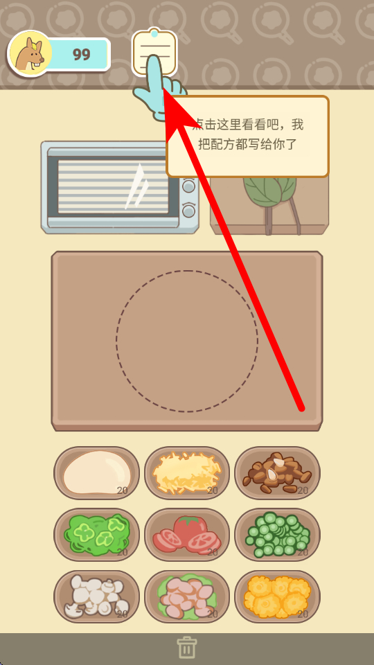 1、菜品制作时,可查看配方提示,选取面团、芝士碎、松子等食材,将食材合理组合后,用烤箱等厨具制作,制作出的美食可用于售卖,获取经营收益。