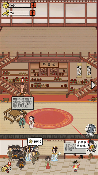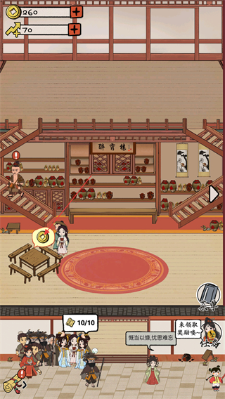 国风画风与江南小镇场景完美契合,搭配NPC的市井对白与随机事件,全方位还原古代酒馆经营的日常,让玩家能够沉浸式感受古代商人的经营乐趣与生活气息。