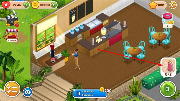 2、在咖啡厅经营界面,点击右侧的果汁图标,查看需要制作的目标。