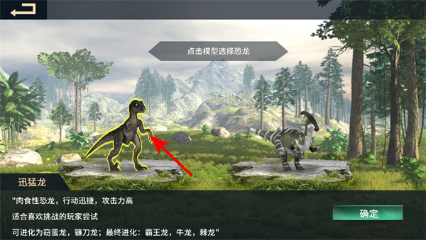 1、游戏初始可选择恐龙,选择时需关注恐龙的属性行动迅捷、攻击力高,结合自身游戏风格选择,助力生存和战斗。