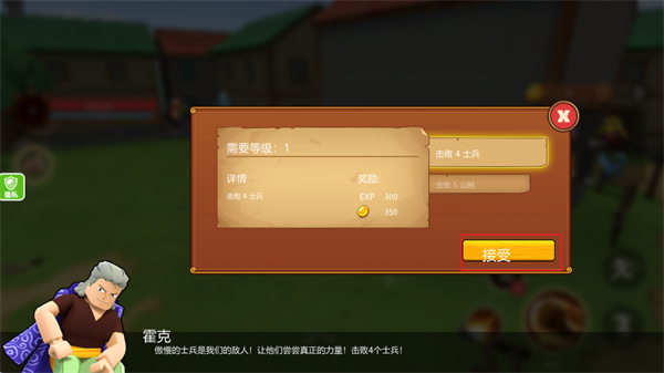 2、第一个任务目标为“击败4士兵”,傲慢的士兵是我们的敌人,让他们尝尝真正的力量;