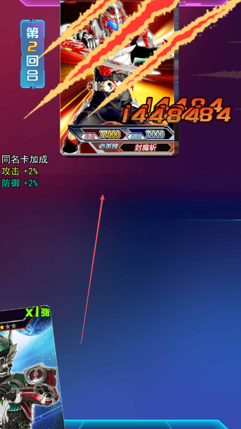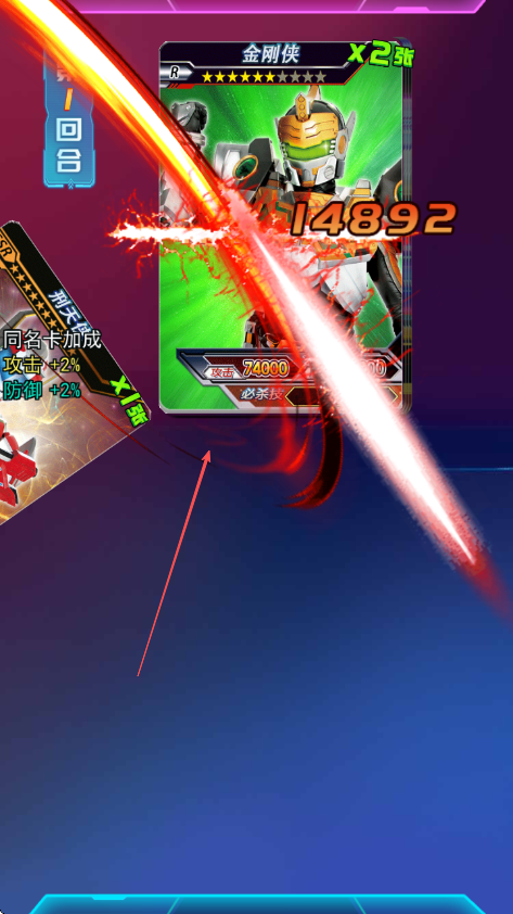 3、对战回合中,查看铠甲勇士卡牌释放技能及造成的伤害数值,把握战斗进程。