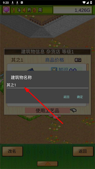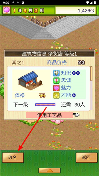 2、在建筑物信息界面中,点击底部的改名按钮,弹出建筑物名称输入框。