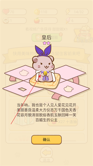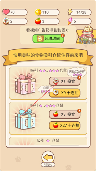 3、在喂食界面可以通过投喂甜甜圈的方式,来吸引2到3星的仓鼠。