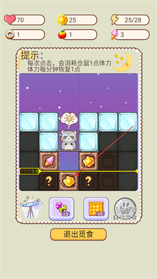 2、点击下方的方块进行销毁获得内部的物品,每次点击会消耗仓鼠的1点体力。