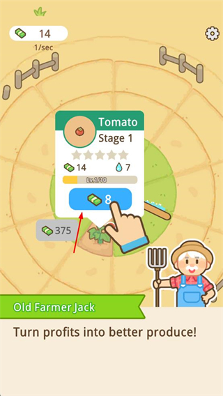 2、消耗资源升级作物,提升作物产量与收益,将收益转化为更优质的农产品。