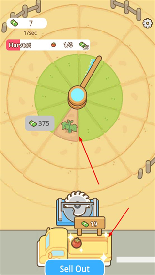 4、收获成熟作物,将其运输并售卖,获取收益,积累资源用于农田升级与作物培育。