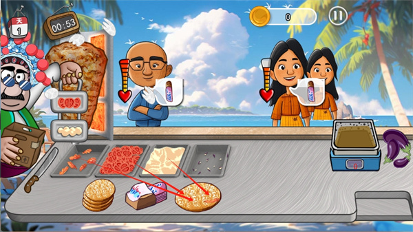 3、需要的食材将会变得更多,难度也会上升,非常挑战玩家的手速。