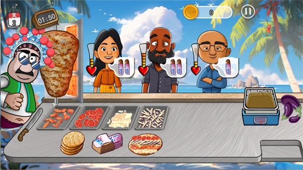 游戏中,模拟制作番茄配料、洋葱、卷饼、炸土豆丝等操作过程,给玩家一个真实的体验,用微波炉等开始你的经营,面对不同口味的顾客,满足他们的要求,一步步扩大可经营规模,解锁更多的品类。同时,游戏中还加入了全新的音效设定,伴随着悠扬的音乐开始经营!