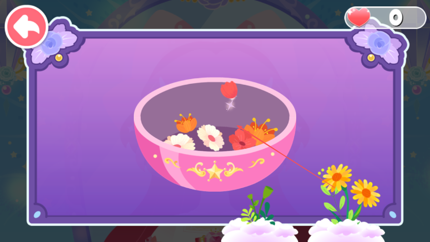 1、游戏开始,看到粉色碗时,点击屏幕下方花朵拖入碗中进行收集。