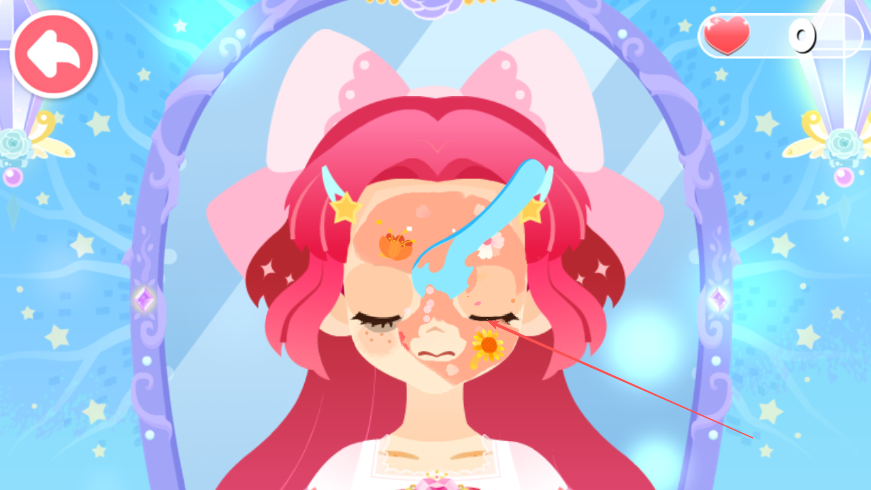 3、切换场景,使用工具为小公主清理脸上的花瓣等杂物,保持脸部整洁。