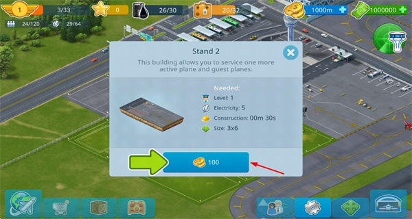 3、在建筑界面,消耗资源升级停机位,提升机场服务能力,满足更多航班需求。