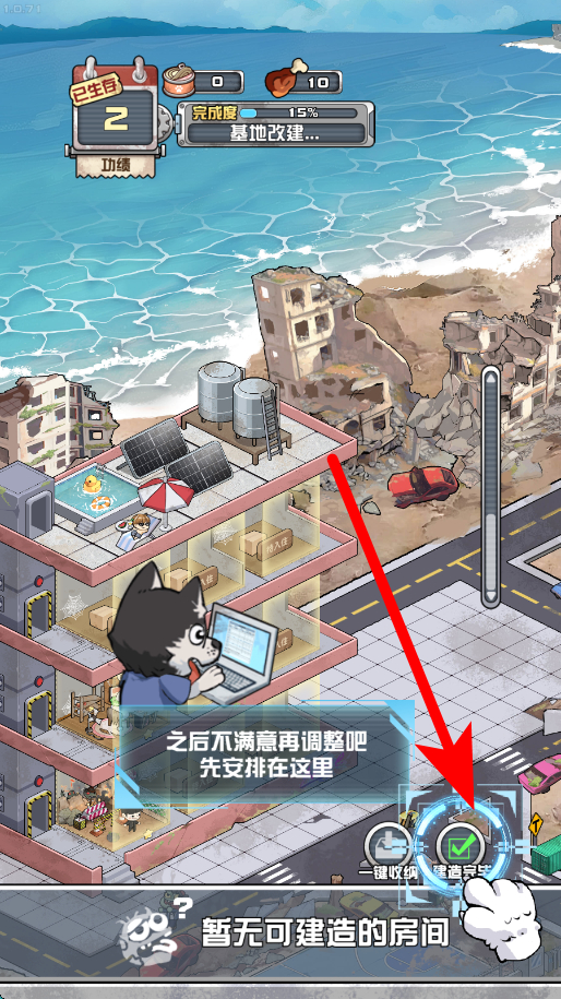 3、安排房间,收留幸存者后,手指向上拖动角色,为其安排合适的房间收留,让幸存者有居住之所,保障基地内人员的生活秩序。